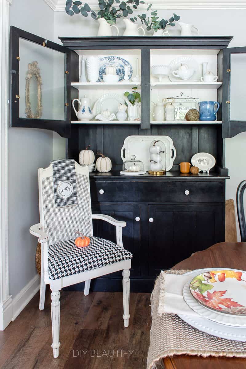 Dining room fall decorating. Decorate the rest of the dining room in the same style and colors.