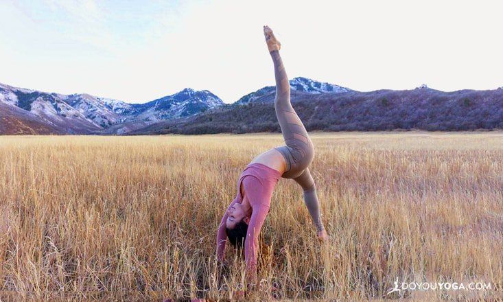One legged wheel pose or eka pada urdhva dhanurasana is a literal extension of urdhva dhanurasana also called wheel pose. Low warrior i one legged king pigeon one handed tiger table. All of these balancing on one leg yoga positions are positions where one foot presses against the other leg or a hand grabs the foot or ankle of the lifted leg.